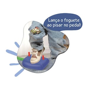 É só posicionar o foguete na base, ajustar o ângulo de lançamento até 70 e... PISAR no pedal Pronto O foguete é lançado a até 30 metros de distância, criando aquele momento de empolgação que toda criança adora.
