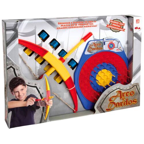 Descrição do produto : O jogo "Arco e Dardos" é uma opção divertida e dinâmica para crianças a partir de 6 anos. Com um suporte azul, alvos em cores vibrantes como amarelo e vermelho, e dardos combinando com o arco nas mesmas cores, a brincadeira estimula a coordenação motora e a concentração. O objetivo é simples: acertar o alvo para marcar mais pontos e vencer a partida. Ideal para momentos de lazer em família ou entre amigos, proporciona entretenimento ativo e saudável para os pequenos. :