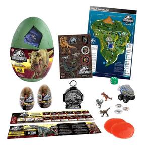 Prepare-se para uma surpresa épica com o Jurassic World: Captivz Mega Ovo O ovo gigante piscando está repleto de surpresas do Jurassic World, como: 1 slime de lava, 1 figura misteriosa de dinossauro, 1 token de batalha, 1 guia de colecionador, 1 carro dino que você puxar para trás e que anda em alta velocidade, 1 folha de adesivos, 1 tabuleiro de jogo, 1 dado, 2 ovos e 1 clipe de mochila