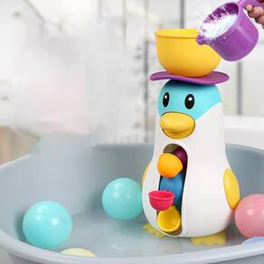 Transforme a rotina do banho em um momento de diversão com o Pinguim! Basta despejar água na cabeça do pinguim que ele soltará água pela boca, criando uma cascata. Encaixe as ventosas no Pinguim para fixá-lo em uma parede.