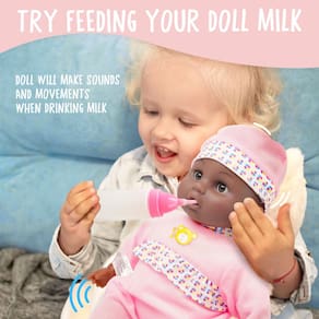Toy Choi's Boneca Interativa Rosa – Bonecas de alimentação falantes chorando com diferentes sons e acessórios, brinquedos pré-escolares para crianças de 2, 3, 4, 5 anos ou mais, presente para meninas, meninos, boneca preta - Boneca de tamanho perfeito: a boneca tem 40 cm, é muito adequada para crianças abraçarem e carregarem. Também é uma boa oportunidade para as crianças aprenderem a segurar um bebê. - Bonecas com sons diferentes: para proporcionar a melhor experiência, esta boneca tem 6 vozes diferentes. Ela pode fazer sons de beber leite, rir, chorar, cantarolar e fazer sons de "papai" e "mamãe". - Conjunto completo de bonecas: além da boneca, também temos acessórios como biscoitos, tigelas de arroz, garfos, pratos, colheres, mamadeiras e chupetas. As roupas da boneca podem ser retiradas para substituição e limpas. - Material seguro e macio: a boneca rosa bebê é feita de material seguro, não contém bisfenol, é ecologicamente correta e segura o suficiente para crianças. Mais importante, todos os acessórios não têm bordas afiadas, então seu filho não será prejudicado. - Boneca educativa: esta boneca fofa permite que as crianças aprendam o pouco conhecimento da vida enquanto brincam. Quando as crianças aprendem a cuidar da boneca como uma mãe, isso as ajuda a desenvolver habilidades básicas de vida, habilidades sociais e emocionais. - Tags relacionadas: bonecas, bonecas, bonecas para bebês, bonecas para crianças, bonecas para meninas de 2 anos, bonecas para meninas de 3 anos, boneca de bebê infantil, conjunto de bonecas, boneca macia, boneca bebê com acessórios, babydolls.