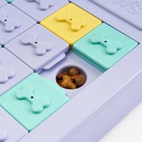 Detalhes: Os Panel Sliders apresentam painéis deslizantes com designs de ossos elevados que seu cão deve mover para acessar as guloseimas dentro. Dois dos painéis são estacionários para maior dificuldade. Basta puxar a bandeja para carregar com guloseimas, deslizá-la de volta e sentar e observar seu cão trabalhar em suas habilidades de resolução de problemas. A base antiderrapante evita deslizamentos.