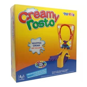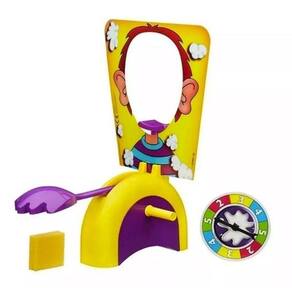 Você está preparado para encarar mais esse desafio Sucesso em todo o mundo, e agora também no Brasil. Objetivo do Jogo O primeiro jogador a marcar 25 pontos é o vencedor Idade recomendada: acima de 3 anos Marca: Toy King Importado Tamanho: AxLxP 26,7x26,7x8cm Composição/Material Plástico e espuma Número de Participantes: acima de 2 participantes Como Jogar: Gire a roleta para descobrir quantas vezes você deve rodar as manivelas. Coloque o seu queixo no apoio através da máscara, de frente para o 'braço atirador', e rode as manivelas de acordo com o número que você conseguiu. Se completar a sua vez sem ser atingido, você marca o dobro do número de pontos indicados na roleta. Se for atingido, você não marca pontos Conteúdo da Embalagem 1 base 1 braço atirador 2 manivelas 1 apoio de queixo 1 carta de máscara 1 roleta 1 esponja e regras Certificado Inmetro Código Certificado: CEBRI/INNAC0015202ª NM 300/2002 Segurança do Brinquedo Ean: 7899949066627