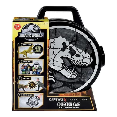 A Maleta de Dinossauros se transforma em um cenário para você poder levar os seus dinossauros para qualquer lugar, a hora que quiser Ela vem com 1 figura de dinossauro dourado exclusivo. Dá para carregar mais de 15 dinossauros na sua maleta. Conteúdo da embalagem: 1 Maleta Colecionador de Dinosasurus e 1 Figura Indominus Rex Gold