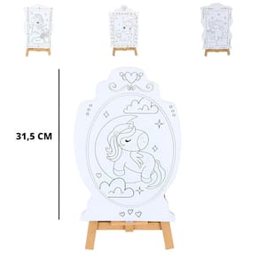 Brinquedo Kit de Pintura Infantil Cavalete Avental Tema:Safari Kit Pintura Infantil Cavalete e Avental Transforme a hora da brincadeira em um momento de arte e aprendizado com o nosso incrível Kit Pintura Infantil Cavalete e Avental - Tema Dinossauro Este conjunto foi cuidadosamente desenvolvido para crianças a partir de 3 anos que desejam explorar sua criatividade de maneira prática e segura. Por que escolher o nosso Kit Pintura Infantil O Kit Pintura Infantil Cavalete e Avental é mais do que apenas um conjunto de pintura; é uma ferramenta poderosa para o desenvolvimento da criatividade e habilidades motoras finas das crianças. Com um design lúdico e educativo, ele proporciona uma experiência única que estimula a expressão artística desde cedo. Características do Produto: - Cavalete Ajustável: O cavalete é leve e fácil de montar, podendo ser utilizado tanto em mesas quanto no chão, adaptando-se ao espaço disponível e à preferência da criança. - Avental Impermeável: O avental protege as roupas durante as atividades artísticas, permitindo que as crianças se divirtam sem preocupações. - Conjunto de Tintas Atóxicas: As tintas são coloridas, seguras e laváveis, garantindo que a diversão não termine em sujeira. - Estimula a Criatividade: O kit é ideal para incentivar a imaginação e o senso estético das crianças, permitindo que elas criem suas próprias obras de arte. - Desenvolve Habilidades Motoras Finas: A pintura ajuda a aprimorar a coordenação motora, essencial para o desenvolvimento infantil. - Momentos de Diversão e Aprendizado: Proporciona uma experiência rica em aprendizado, onde as crianças podem explorar cores, formas e texturas. Especificações Técnicas: - Idade Recomendada: A partir de 3 anos. - Dimensões do Cavalete: 36cm ALTURA x 20cm LARGURA - Dimensões do Avental: 48cm ALTURA x 43cm LARGURA - Dimensões das Telas: 31,5cm ALTURA x 21cm LARGURA - Material: Madeira, Papel e Plástico - Temas: Variados, com foco no tema dinossauro, que encanta as crianças. - Modelo: Kit de Pintura Infantil Itens Inclusos: - 01x Cavalete - 01x Avental - 06x Tintas - 01x Pincel - 01x Paleta para Mistura - 04x Telas Temáticas de Satisfação: 1. Qual a idade recomendada para o uso do kit O kit é recomendado para crianças a partir de 3 anos. 2. As tintas são seguras para crianças Sim, as tintas são atóxicas e laváveis, garantindo a segurança das crianças durante a pintura. 3. O avental é realmente impermeável Sim, o avental é feito de material impermeável, protegendo as roupas das crianças durante as atividades artísticas. 4. O cavalete é fácil de montar Sim, o cavalete é leve e fácil de montar, podendo ser utilizado em diferentes superfícies. 5. Posso usar o kit em ambientes externos Sim, o kit é ideal para uso em ambientes internos e externos, proporcionando diversão em qualquer lugar Conclusão: Não perca a oportunidade de proporcionar à sua criança momentos de diversão, aprendizado e criatividade com o Kit Pintura Infantil Cavalete e Avental - Tema Dinossauro. Adquira já o seu e veja a alegria nos olhos do seu pequeno artista