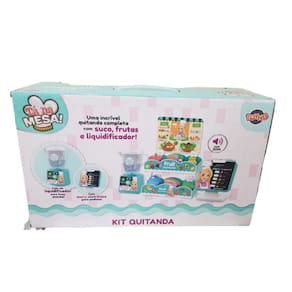 -material: Plástico -idade recomendada: A Partir de 3 Anos -referência: 43779 -contém: 1 Kit Quitanda com: 1 liquidificador com som, 1 menu eletronico e frutinhas diversas. -peso da Caixa: 0,932Kg -tamanho da Caixa LAP : 45x28x16cm -código de Barras: 7899871614538