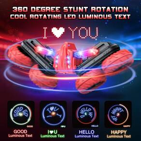 Carro de controle remoto, carros de acrobacia RC com dupla face, giros de 360 graus, brinquedo infantil, 2,4 GHz recarregável com letras iluminadas por LED, brinquedos de carro RC para 3, 4, 5, 6, 7, 8-12 anos, presentes de aniversário para meninos e meninas - Carro de controle remoto giratório de 360°: além das habilidades básicas que os carros de controle remoto comuns devem ter, o carro pode cair no lugar a 360 graus e dirigir em dupla face. Quando o carro encontrar um pequeno obstáculo, use o controle remoto para fazer o carro rolar ou a condução frente e verso pode passar facilmente por obstáculos, esta função também pode reverter repentinamente em movimento rápido para fazer o carro de brinquedo se transformar instantaneamente em um carro de dança. - Letras iluminadas por LED: experimente a magia das luzes LED com telas de texto cativantes! Veja como seu carro RC acende com mensagens vibrantes como "HELLO" "I ? YOU" ou "Happy" "GOOD" enquanto realiza giros verticais emocionantes. cada corrida se tornará inesquecível e emocionante. - DUAL-MOTORES DESEMPENHO MAIOR: o carro RC equipado com motores elétricos potentes e 4 peças de pneus de borracha macia e elástica de alta qualidade (absorção de choque, antiderrapante, tem boa aderência). Os pneus de borracha antiderrapantes também garantem a este carro RC uma aderência mais forte. Quer estejamos em ambientes internos ou externos, para escolher o lugar certo, vamos lá, o carro de acrobacias RC trará uma experiência de condução diferente para seus filhos. - Materiais de alta qualidade: Feito de ABS de qualidade premium e materiais de PVC não tóxicos, a carroceria do carro super à prova de choque evita danos, torna a carroceria mais durável, para garantir que o material seja seguro, o carro é fixado com parafusos e elementos eletrônicos de alta classe para garantir a estrutura do carro segura. Isso será mais adequado para seus filhos brincarem. - PRESENTE PERFEITO PARA CRIANÇAS: Presente de carro RC ideal para amantes de carros de corrida, projetado com pneus duráveis anti-colisão, este carro RC rastreador de rochas funciona bem em praias arenosas, pastagens ou terras montanhosas, adequado para jogar em ambientes internos e externos. As rodas flexíveis fazem o carro de corrida de controle remoto funcionar em alta velocidade e melhor flexibilidade, sendo um bom presente de Natal ou presente de aniversário, presentes de Páscoa para crianças. Também são os melhores presentes para crianças de 3, 4, 5, 6, 7, 8, 9, 10, 11, 12 anos, adolescentes e adultos.