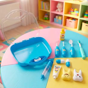 A Maleta Médico Dentista Infantil é perfeita para estimular a imaginação e o faz de conta das crianças. Com 11 acessórios temáticos de odontologia, o brinquedo ajuda a reduzir o medo do dentista, desenvolve habilidades sociais e incentiva o aprendizado de forma divertida e educativa
