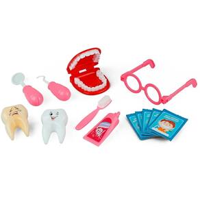 Contém: 01 Maleta, 01 Dentadura, 01 Escova, 01 Espelho, 01 Pinca, 01 Oculos, 01 Pasta de dente, 01 Dente sujo, 01 Dente limpo, 06 Cartinhas