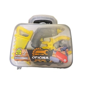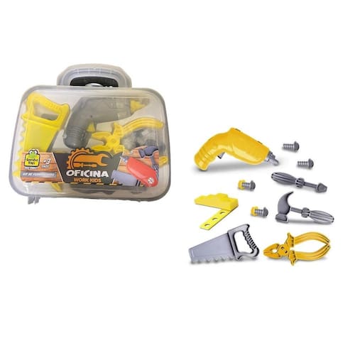 Detalhes do Produto: Conteúdo Embalagem:1 Chave de fenda, 1 Martelo, 1 Serrote, 4 parafusos, 1 alicate, 1 furadeira, 2 porcas e 01 Suporte para Parafuso. Idade Recomendada: acima dos 3 anos