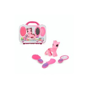 Detalhes do Produto: Mini Maleta de Plástico Resistente: Ideal para armazenar o unicórnio e os acessórios. Unicórnio de Vinil: Macio e colorido, pronto para muitas aventuras. Acessórios: Duas escovas de cabelo e um espelho de plástico. Tamanho Compacto: Perfeito para levar na bolsa ou mochila.