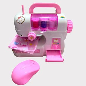 - com a linda máquina de costura infantil as crianças terão diversão garantida, além de ser um brinquedo educativo ela também funciona como uma máquina de costura de verdade dando pontos em pedaços de tecidos os pontos são leves não oferecem uma costura resistente pois trata-se de um brinquedo . Ela possui uma agulha na parte de cima que faz com que a máquina costure de verdade. Acompanha 3 carretéis de linha para a diversão ficar completa. os carretéis são rebobináveis, ou seja, ao acabar a linha ele pode ser reabastecido apenas enrolando a linha .