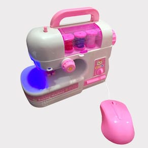 - costura de verdade. - possui luz na parte superior. - com protetor de agulha para evitar acidentes com as crianças. - indicado para crianças a partir de 3 anos. - vem com 3 carretéis de linha e um pedaço de tecido. - necessário 3 pilhas aa não inclusas . - tamanho: aprox. 17x17x6,5cm. - material: plástico 100% resistente. - feito de material resistente ao desgaste e durável. - ajude a melhorar a habilidade prática e a capacidade imaginativa de seu filho a .