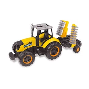 Características PrincipaisTamanho Grande (Max): Com dimensões consideráveis, este trator com arado oferece uma experiência de brincadeira mais imersiva e realista. Seu porte robusto facilita a interação da criança, permitindo que ela o empurre, manobre e simule operações agrícolas com maior facilidade, tanto em ambientes internos quanto externos (como caixas de areia ou quintais).