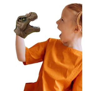 Brinquedo Menino Dinossauro Fantoche Mão Luva Borracha Brincadeira Divertida - Cor: Marrom