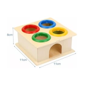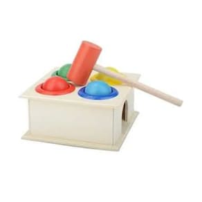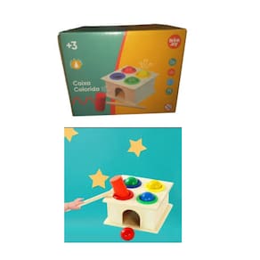 Características: - Contém: 1 mesa de bater, 4 bolas e 1 martelo; - Acima de 9 meses; - Tamanho: 8cm de altura x 11cm de largura x 11cm de comprimento; - Material: madeira.