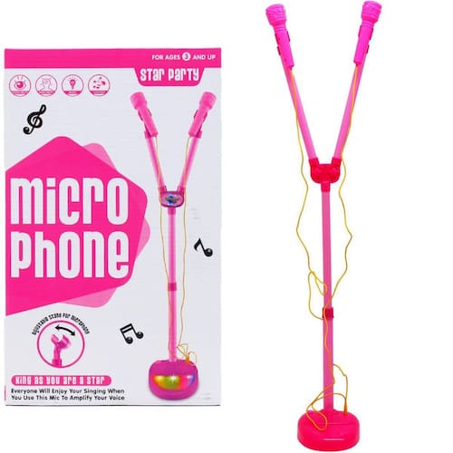 Tripé com 2 Microfones - Marca: Toy King Os microfones são uma ótima maneira de se divertir. Ele é perfeito tanto para a diversão, como também é uma ótima maneira de oferecer ao ambiente um toque descontraído e divertido. Pode proporcionar momentos muito agradáveis com a família e os amigos. CARACTERÍSTICAS: - Material: Plástico - Cor: Rosa - O tamanho do tripé é ajustável - O angulo do microfone é ajustável - A base do tripé emite luz Medidas Ajustável: - altura: 60cm até 103cm de altura a altura é ajustável - largura: 17cm até 60cm de largura a largura é ajustável Itens: 01 tripé 02 microfones INMETRO: CE-BI/INNAC - 00152-03A NM 300/2002