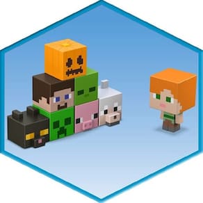— O tempo está criando, explorando e sobrevivendo com essas figuras ajustáveis Minecraft Mini-Heads! Essas figuras apresentam cabeças gigantes e partes móveis para facilitar o manuseio dos pequenos.