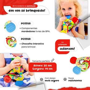 Dê ao seu bebê um companheiro multifuncional que trará conforto, diversão e alívio a mini girafa é o brinquedo perfeito para acompanhar o crescimento do seu pequeno, sendo um item essencial para cada fase do desenvolvimento. Características: Mordedor seguro e confortável: desenvolvido especialmente para aliviar o desconforto da dentição, o mordedor da mini girafa é feito de materiais seguros e macios, proporcionando alívio imediato para as gengivas sensíveis do bebê. Chocalho : com um chocalho integrado, este brinquedo ajuda a estimular os sentidos do seu bebê, transformando cada movimento em uma experiência de descoberta divertida. Pelúcia macia e aconchegante: a mini girafa é confeccionada com pelúcia de alta qualidade, super macia ao toque. Perfeita para abraços e momentos de carinho, garantindo que seu bebê se sinta confortável e seguro. Naninha que acalma: além de ser um brinquedo e mordedor, a mini girafa também funciona como uma naninha aconchegante, ajudando o bebê a ter noites de sono tranquilas e confortáveis. Especificações: Idade recomendada: a partir de 0 meses Material: pelúcia macia, silicone seguro para bebês Tamanho: aproximadamente 20 cm de altura Cor: amarela e marrom com detalhes adoráveis Peso: leve e fácil de segurar Benefícios: Estimula o desenvolvimento sensorial e motor Proporciona conforto durante a dentição Contribui para a tranquilidade do bebê na hora do sono Produto seguro e adequado para bebês de todas as idades A mini girafa mordedor, chocalho, pelúcia e naninha é o presente ideal para recém-nascidos e bebês em crescimento. Um brinquedo que reúne tudo o que seu pequeno precisa para momentos de diversão, conforto e alívio. Adquira já e garanta um companheiro fiel para todas as horas Informações importantes : nós oferecemos em todos os nossos produtos por favor, consultar no anúncio a quantidade de dias para cada produto. Muito obrigado pela confiança Yamaecom . do vendedor: 30 dias 3 Homologação Inmetro: CE-BRI/ICEPEX-I 02439-25-23