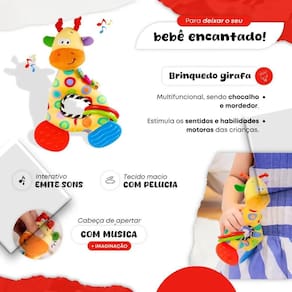 Dê ao seu bebê um companheiro multifuncional que trará conforto, diversão e alívio a mini girafa é o brinquedo perfeito para acompanhar o crescimento do seu pequeno, sendo um item essencial para cada fase do desenvolvimento. Características: Mordedor seguro e confortável: desenvolvido especialmente para aliviar o desconforto da dentição, o mordedor da mini girafa é feito de materiais seguros e macios, proporcionando alívio imediato para as gengivas sensíveis do bebê. Chocalho : com um chocalho integrado, este brinquedo ajuda a estimular os sentidos do seu bebê, transformando cada movimento em uma experiência de descoberta divertida. Pelúcia macia e aconchegante: a mini girafa é confeccionada com pelúcia de alta qualidade, super macia ao toque. Perfeita para abraços e momentos de carinho, garantindo que seu bebê se sinta confortável e seguro. Naninha que acalma: além de ser um brinquedo e mordedor, a mini girafa também funciona como uma naninha aconchegante, ajudando o bebê a ter noites de sono tranquilas e confortáveis. Especificações: Idade recomendada: a partir de 0 meses Material: pelúcia macia, silicone seguro para bebês Tamanho: aproximadamente 20 cm de altura Cor: amarela e marrom com detalhes adoráveis Peso: leve e fácil de segurar Benefícios: Estimula o desenvolvimento sensorial e motor Proporciona conforto durante a dentição Contribui para a tranquilidade do bebê na hora do sono Produto seguro e adequado para bebês de todas as idades A mini girafa mordedor, chocalho, pelúcia e naninha é o presente ideal para recém-nascidos e bebês em crescimento. Um brinquedo que reúne tudo o que seu pequeno precisa para momentos de diversão, conforto e alívio. Adquira já e garanta um companheiro fiel para todas as horas Informações importantes : nós oferecemos em todos os nossos produtos por favor, consultar no anúncio a quantidade de dias para cada produto. Muito obrigado pela confiança Yamaecom . do vendedor: 30 dias 3 Homologação Inmetro: CE-BRI/ICEPEX-I 02439-25-23 Marca: Não Informado