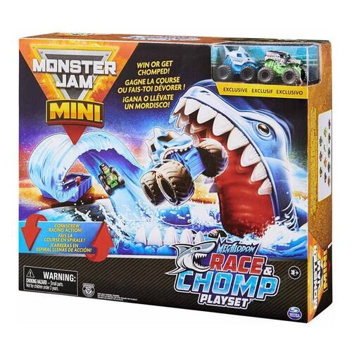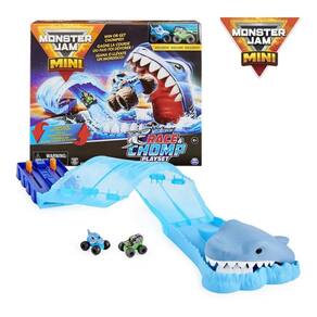 Corrida através de uma onda perversa e em uma cabeça de tubarão gigante! Você é rápido o suficiente para atravessar a onda sem ser mordido? O playset inclui 2 caminhões Monster Jam Mini exclusivos - Megalodon e Grave Digger! Os caminhões Monster Jam Mini colocam a ação Monster Jam na palma da sua mão! Cada caminhão Monster Jam Mini é embalado com detalhes e gráficos incríveis, assim como sua versão em grande escala! Coloque os caminhões Monster Jam Mini no lançador. Escolha entre 3 velocidades e lance seu mini caminhão Monster Jam em ação! Observe-os torpedear através da onda épica e atingir a cabeça de tubarão que mastiga! Compatível com todos os seus caminhões Monster Jam Mini oficiais favoritos. Compactos e pequenos em tamanho, esses mini monster trucks em escala 1:87 estão prontos para a ação épica de Monster Jam! Esmague, destrua e abra caminho através do seu próprio campo de Monster Jam. Imagem meramente ilustrativa.