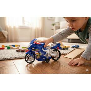 A Moto Racer chegou para trazer velocidade e adrenalina! Ela vai surpreender as crianças com sua fricção Mais diversão e realismo para a brincadeira.