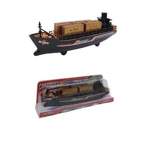 Deixe a imaginação correr solta com o Navio Cargueiro com container! Movido à fricção, com design igual ao de um navio com containers, oque vai fazer a brincadeira muito mais divertida!
