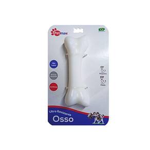 O Osso Ultra Resistente é um produto fabricado em Nylon nos tamanhos M e G - Com a mastigação, surgem pequenas cerdas tipo de escovas que limpam os dentes e massageiam a gengiva. Como o Nylon não é abrasivo, os dentes não são desgastados, a ação da mastigação raspa a placa e ajuda no controle do tártaro.
