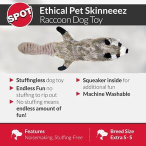 Mini Guaxinim de Brinquedo Ethical Pets, 35 cm, Sem Enchimento, Brinquedo que faz Barulho para Cães e Gatos