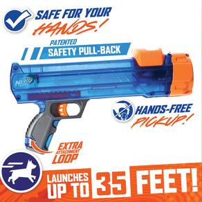Nerf Brinquedo de bola de tênis para cães, Blaster translúcido de 30 cm com 3 bolas de tênis em miniatura de 5 cm - NERF -Resistente: os materiais de qualidade Nerf tornam nosso lançador de bola de tênis pequeno perfeito para buscar e ensinar novos truques ao seu cão - Operação fácil: operar o lançador é tão fácil quanto puxar a alça, carregar a bola e tirar sua tacada - Vai à distância: bolas de tênis Skyrocket de até 10,7 m! Com potência ajustável, você pode facilmente alterar a distância de suas fotos e se adaptar a qualquer ambiente, seja um grande parque ou um pequeno jardim. Observação: o Blaster funciona com bolas de tênis de 5 cm - Para raças pequenas e médias: a bola de diâmetro menor é ótima para cães menores - Segurança em primeiro lugar: Projetado com a segurança do seu cão em mente, cada um dos nossos brinquedos para cães é testado para garantir infinitas horas de diversão em família