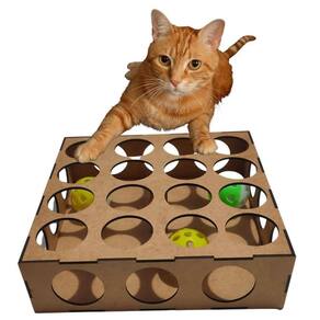 Material: MDF cru 3mm com 3 bolinhas com gizo (fazendo o barulho que chama atenção dos nossos gatinhos)