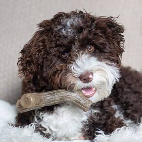 — durável, com um pouco de elasticidade — os Benebones são para mastigadores determinados. Nossa linha de filhotes é durável e bastante firme ao toque humano, mas é um pouco mais tolerante com a dentição de filhotes.