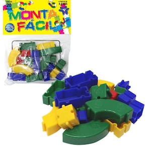 Monta fácil. Pacote com 20 peças coloridas, para criança brincar e montar. Peças plásticas que auxiliam na coordenação motora e criatividade da criança. Faixa etária: crianças a partir dos 4 anos.