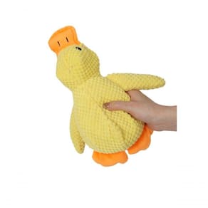 Confeccionado em poliéster resistente, o brinquedo possui textura acolchoada e foi desenvolvido especialmente para proporcionar conforto e durante as brincadeiras. O destaque fica por conta do som divertido emitido quando o pescoço do pato é apertado, estimulando o interesse e a atividade dos animais.
