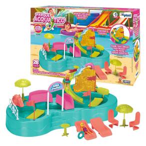 ARQUE AQUATICO DE BRINQUEDO HOMEPLAYQuem não ama em um dia quente se refrescar em uma piscina e se divertir com quem a gente ama!?O Parque Aquático é um brinquedo interativo, pois simula uma piscina com tobogã com fluxo de água. E por esse brinquedo ter mecanismos manuais, permite a criança desenvolver sua coordenação motora, senso de coletividade e concentração. Um brinquedo que ajuda no desenvolvimento da sua pequena enquanto se diverte!PARQUE AQUATICO COM ÁGUA DE VERDADE!Sua filha vai amar brincar junto das coleguinhas e levar suas bonecas para se divertir no Parque aquático como em um de verdade. Mas saiba que é um brinquedo ecologicamente correto: não desperdiça água devido ao sistema de sucção, e também não utiliza pilhas. Sendo fácil de limpar e guardar!Com o Parque Aquático é diversão garantida!!!CARACTERÍSTICAS:- Tobogã;- 2 Bonecas;- Cadeiras;- Guarda-Sol;- Espreguiçadeiras;- Colchões flutuantes;- Boias e entre outros itens!FICHA TÉCNICA:- Recomendado a partir de 03 anos- Acompanha 02 bonecas e diversos acessórios- Modelo: Parque Aquatico Infantil- Composição / Material: Plástico- Fabricante: Xplast / Homeplay- Certificação de segurança do INMETRO 003342/2021
