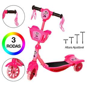 Patinete de tres rodas, cestinha, criança, infantil, dm toys, led, feminino, rosa, meninos, brinquedo, meninas, minnie, mouse, mickey, disney, desenho Marca: Não Informado