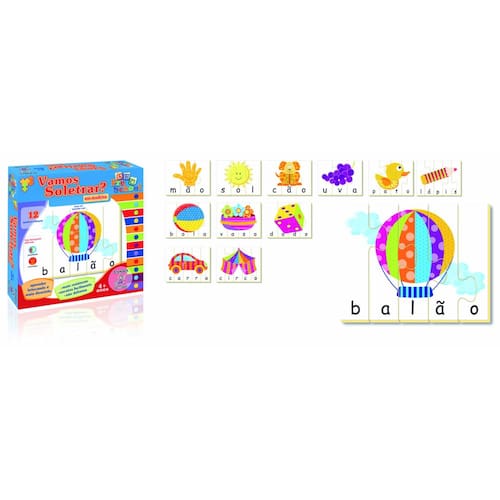 São 12 quebra-cabeças que formam palavras. Juntando as letras, a criança monta a imagem. Uma forma divertida de soletrar as palavras.