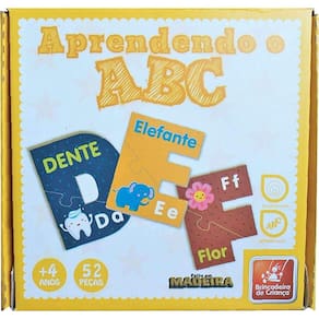 Jogo Aprendendo o Abc - 195 - Brincadeira De Criança Este jogo em específico é um quebra cabeça no qual fica muito fácil aprender o alfabeto, com a associação de imagens e letras. Certificação do Inmetro: CE-BRI/OCP-N 00013-01 NM300/2002. Idade Recomendada: + 4 anos Material: Madeira Garantia: Contra Defeitos de Fabricação Medidas da embalagem: (C x A x L) 22 x 22 x 4 cm. Prazo de garantia: 03 meses de garantia legal. Observe atentamente a idade recomendada para o brinquedo. Pode conter partes pequenas que podem ser engolidas e perigosas. Fotos ilustrativas as cores e modelos podem sofrer alterações sem aviso prévio.
