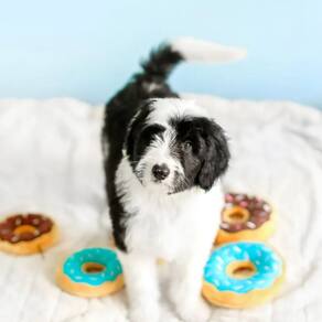 Os Donutz da ZippyPaws trazem um design único, com "granulados" e coberturas bordados que imitam perfeitamente a aparência de donuts reais e deliciosos.