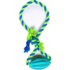 Acompanha o produto: - 1 Brinquedo Pet Dental Play para Morder Bolinha Rugbi Corda com Laço 7x30cm Garantia: - 3 meses