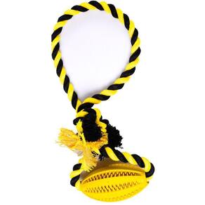 Características Gerais do Produto: - Composição: Plástico; Corda de Nailon - Informações Adicionais: Com ranhuras para fazer a higiene bucal do Pet; Cores enviada conforme disponibilidade; Acompanha apenas 1 unidade; - Largura (cm): 7.00 - Comprimento (cm): 30.00