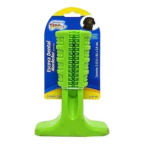 Brinquedo Pet Mordedor e Escova de Dente Indicação:Indicado para higienização dos dentes de cães de grande porte.Cães com mordidas mas firmesObs : para cada porte de animasExiste o modelo propio , de acordo com o seu tamanhoModo de usar:Introduzir a pasta dental especifica para animais no compartimentodo mordedor.A escovação deve ser feita com pasta dental especifica para animais.Nos primeiros dias, coloque a pasta dental no dedo e deixe o seu animal de estimação lamber uma pequena quantidade até ele se acostumar.Deixar o mordedor com seu animal por alguns minutos.Não deixe o animal usar o produto sem supervisão.Cuidados:Produtos exclusivo para animais domésticos.Não utilize pasta dental para humanos, para evitar distúrbios estomacais e intoxicação.Manter sempre limpo para evitar o desenvolvimento de bactérias.Apropriar o produto a idade, tamanho e temperamento do seu animal.Não permita que seu animal de estimação use um produto quebrado ou danificado.Vedado ao uso humano.Consulte um veterinário regularmente para avaliar a saúde bucal de seu cão.Guarde estas instruções para futuras consultas.Manter fora do alcance das crianças.Dimensões da Peça: 17,5 x 12,8 x 5,8cmMaterial: TPRCor: VerdeTipo de Embalagem: SuporteMarca: Western Marca: Tudo em Caixa