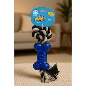 Brinquedo pet para cães com corda e mordedor forte Proporcione mais diversão, bem-estar e saúde para o seu pet com o brinquedo interativo pet chup chup da marca napi. Desenvolvido especialmente para cães de todos os portes, este brinquedo combina dois elementos fundamentais para a saúde bucal e o entretenimento dos pets: corda de trançado resistente e mordedor em formato de osso com textura massageadora. O brinquedo é composto por uma corda grossa, feita em algodão trançado de alta resistência nas cores preto, branco e cinza, ideal para brincadeiras de puxar, morder e estimular o instinto natural de caça dos cães. Na extremidade inferior, conta com um osso de borracha azul texturizado, que serve como mordedor. Essa superfície com relevos ajuda a massagear a gengiva, auxiliar na limpeza dos dentes e contribuir para a saúde bucal do animal. Produto fabricado com materiais duráveis, pensado para suportar mordidas e garantir maior durabilidade, mesmo com uso frequente. Além disso, o brinquedo é uma excelente forma de evitar o , ansiedade e o tédio nos momentos em que o pet está sozinho, promovendo uma rotina mais ativa e saudável. Benefícios: Estimula o instinto natural de mastigação e caça; Ajuda na limpeza dos dentes e saúde das gengivas; Ideal para brincadeiras interativas e exercícios físicos; Ajuda a evitar comportamentos destrutivos; Indicado para cães de pequeno, médio e grande porte; Material resistente e seguro para o pet; Pode ser utilizado em atividades de adestramento. Especificações técnicas: Marca: napi Modelo: pet chup chup Material: corda de algodão trançado e borracha termoplástica Cor: corda preto, branco e cinza mordedor azul Indicação: cães de todos os portes Origem: china Tamanho aproximado: 23 cm de comprimento