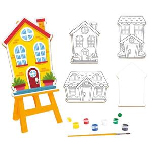 O Brinquedo Pinturinha Casinhas é a escolha perfeita para pequenos artistas a partir de 4 anos Ele transforma a hora da brincadeira em um momento cheio de imaginação, cor e diversão. Acompanha um cavalete de plástico, tintas coloridas e 4 telas de madeira com 24 cm cada - sendo 3 com desenhos de casinhas superfofas para pintar e 1 tela em branco para a criança criar a sua própria casinha dos sonhos
