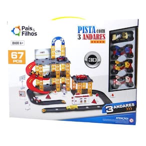 Brinquedo Pista de Carrinhos 3 Andares 67 Peças 4 Carros Pais & Filhos