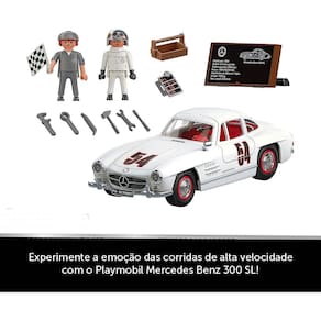 O ícone do carro esportivo da década de 1950 com as lendárias portas asa de gaivota. Agora também da PLAYMOBIL, equipado com figuras e acessórios em uma cena de corrida dos anos 1950. O Mercedes-Benz 300 SL da PLAYMOBIL, o carro esportivo clássico com as lendárias portas de asa de gaivota. Quando foi apresentado no International Motor Sports Show em Nova York em 1954, o Mercedes-Benz 300 SL era considerado o carro esportivo mais rápido de sua época, atingindo velocidades máximas de até 260 km/h. Quantidade no pacote: 1 Material do produto: Plástico Cor do produto: Multicor
