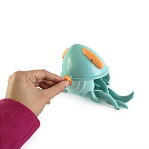 Dê corda para vê-lo mexer os tentáculos na água ou puxe pela cordinha para vê-lo se movimentar no chão.