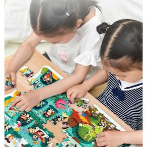 Quebra-cabeça no tema castelo mágico com 144 peças. Ajude o príncipe a derrotar o dragão e salvar a princesa. O quebra-cabeça finalizado fica em forma de um lindo castelo mágico. Lindas imagens com cores vivas e peças de extrema qualidade, são as marcas registradas da Mideer. Acompanha cola e espátula para colar as peças do quebra-cabeça.