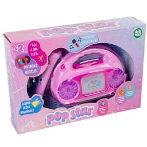 Radio com microfone amplificador popstar infantil com musicas e luzes