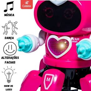 Conteúdo da Embalagem: 1 Bot Robot Rosa com luz e som